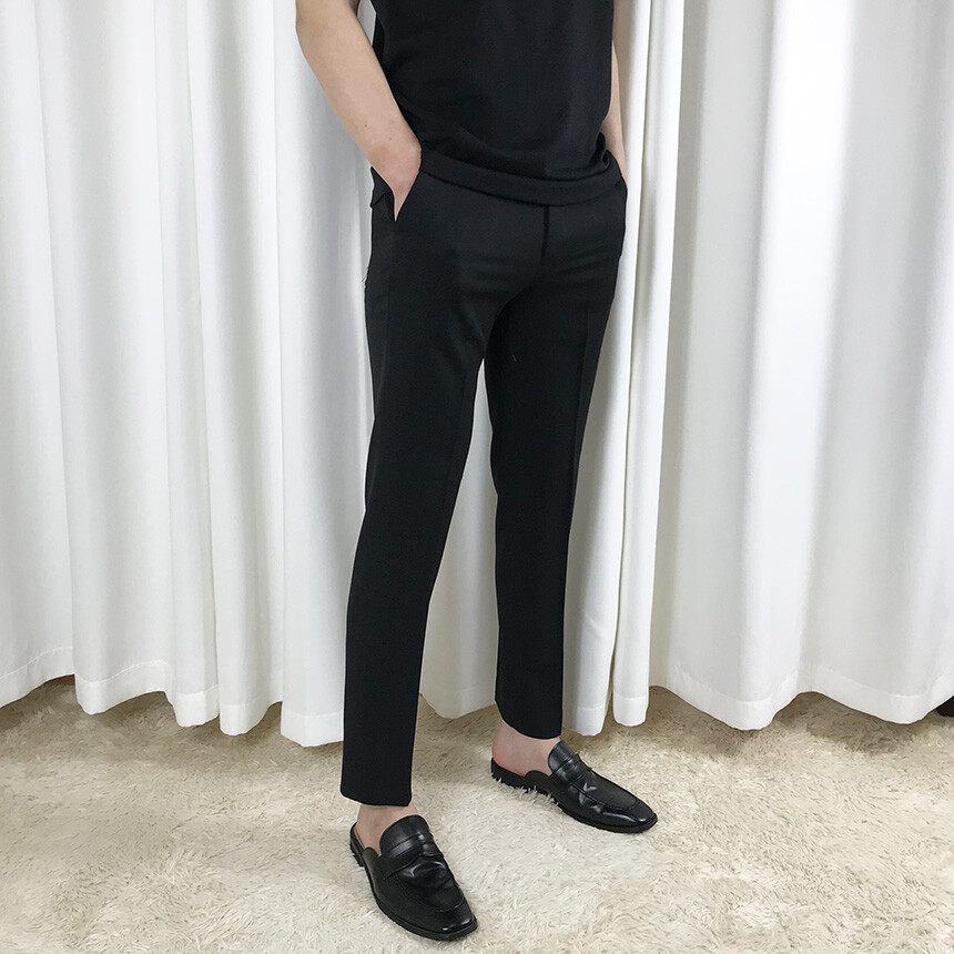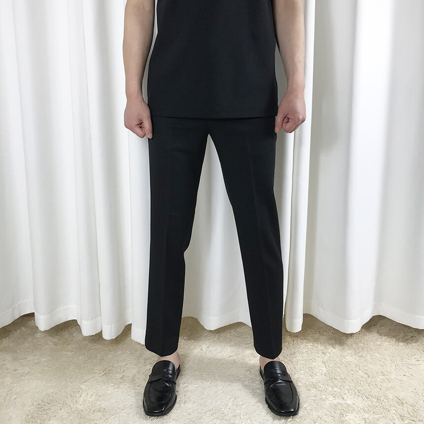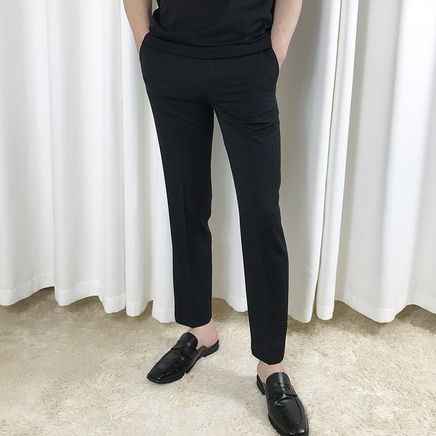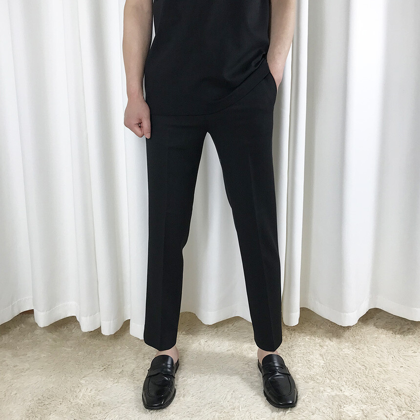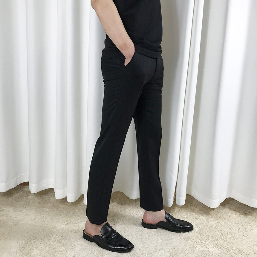 블랙 텐셀 기본 9부 슬랙스