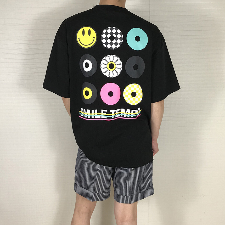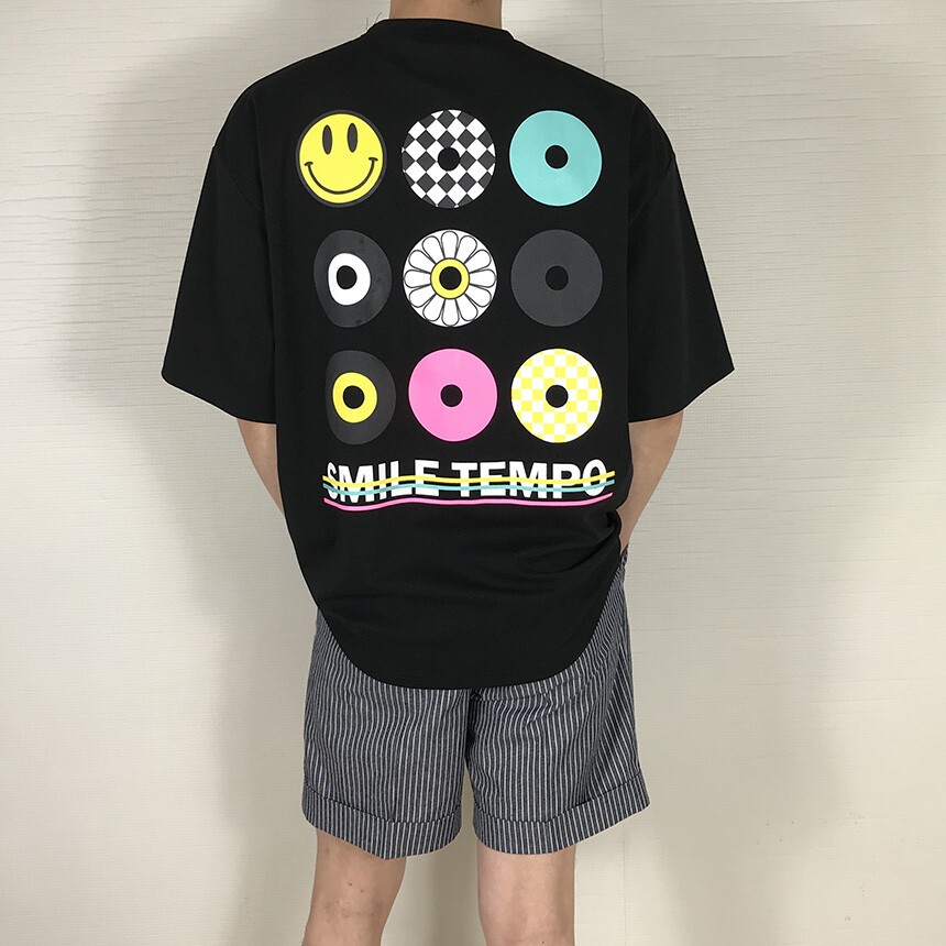 오버핏 스마일 블랙 면반팔티 [BXATSBM1360]
