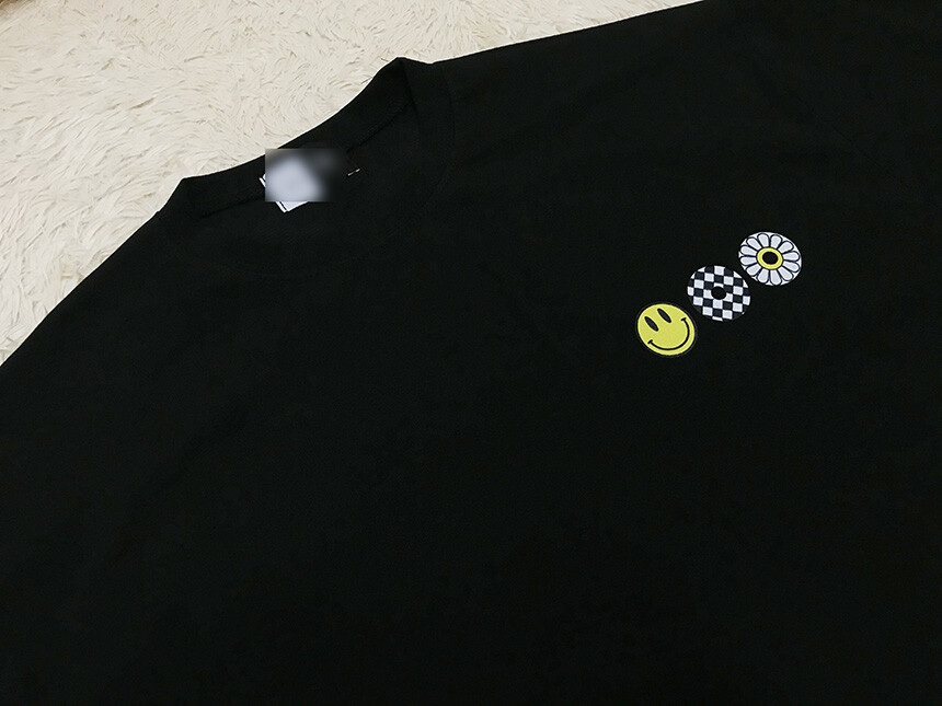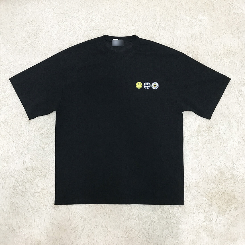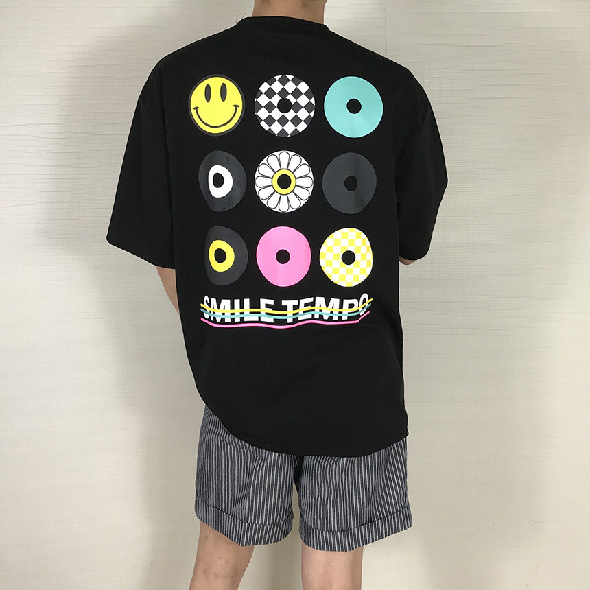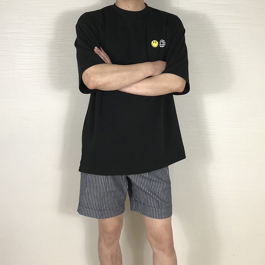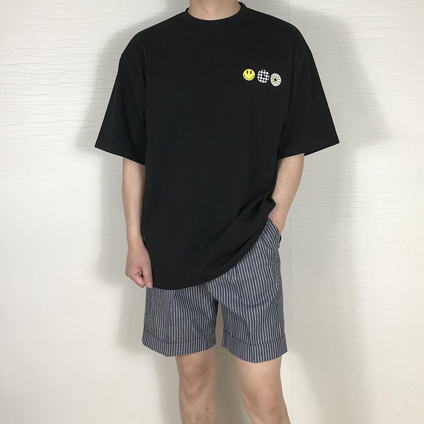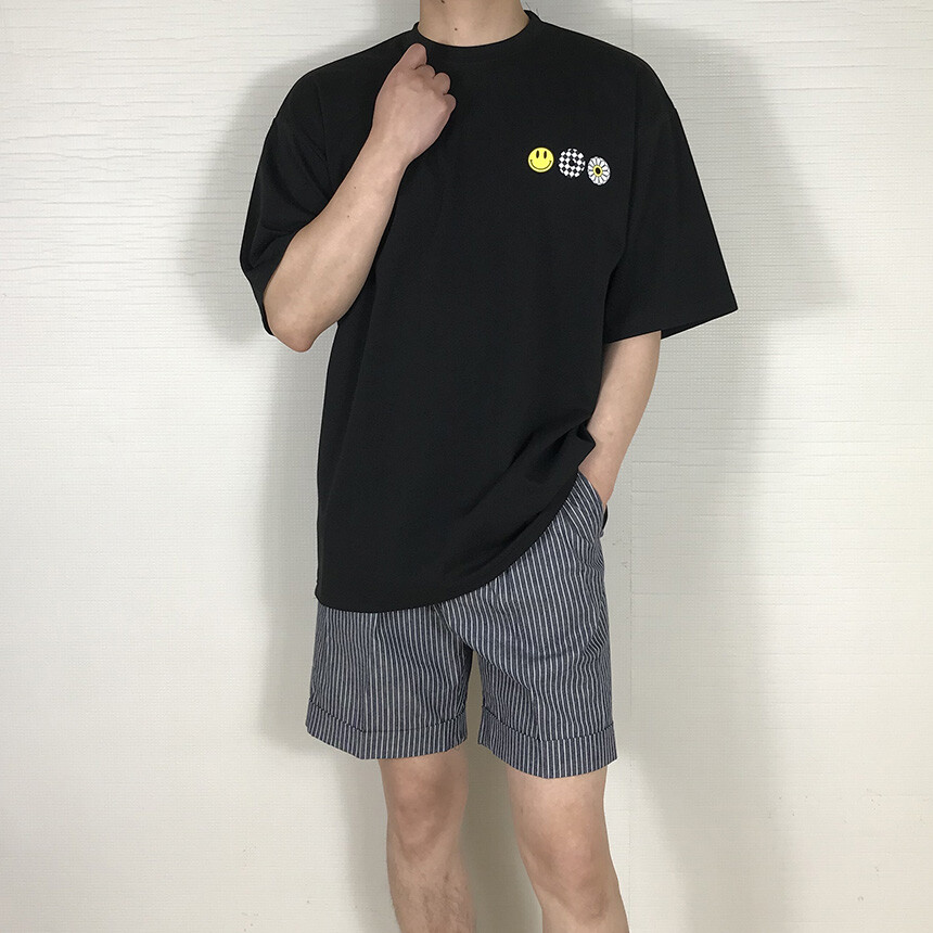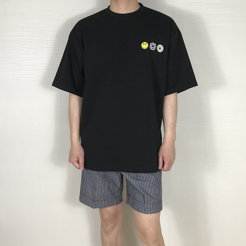 오버핏 스마일 블랙 면반팔티