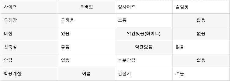 평소 입던 스타일과 달라 만족도가 낮을 수 있습니다