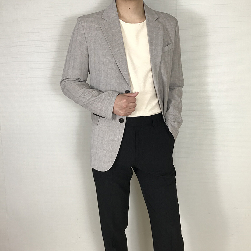 슬림 라떼베이지 글렌체크 캐주얼 자켓