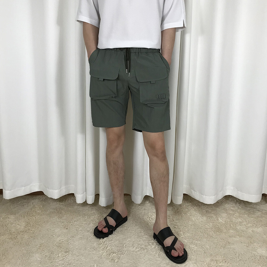 포켓 고무줄 워싱 코튼 반바지(2col) [BXAPSBM0019]