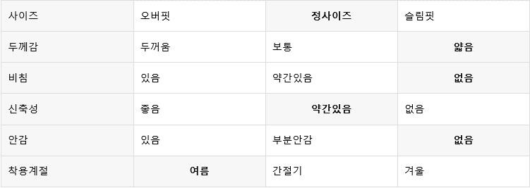 평소 입던 스타일과 달라 만족도가 낮을 수 있습니다