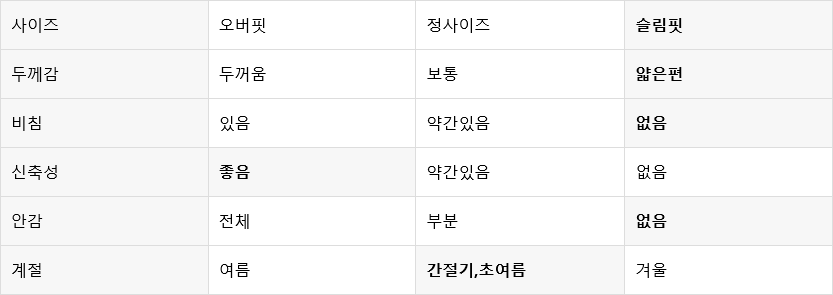 평소 입던 스타일과 달라 만족도가 낮을 수 있습니다