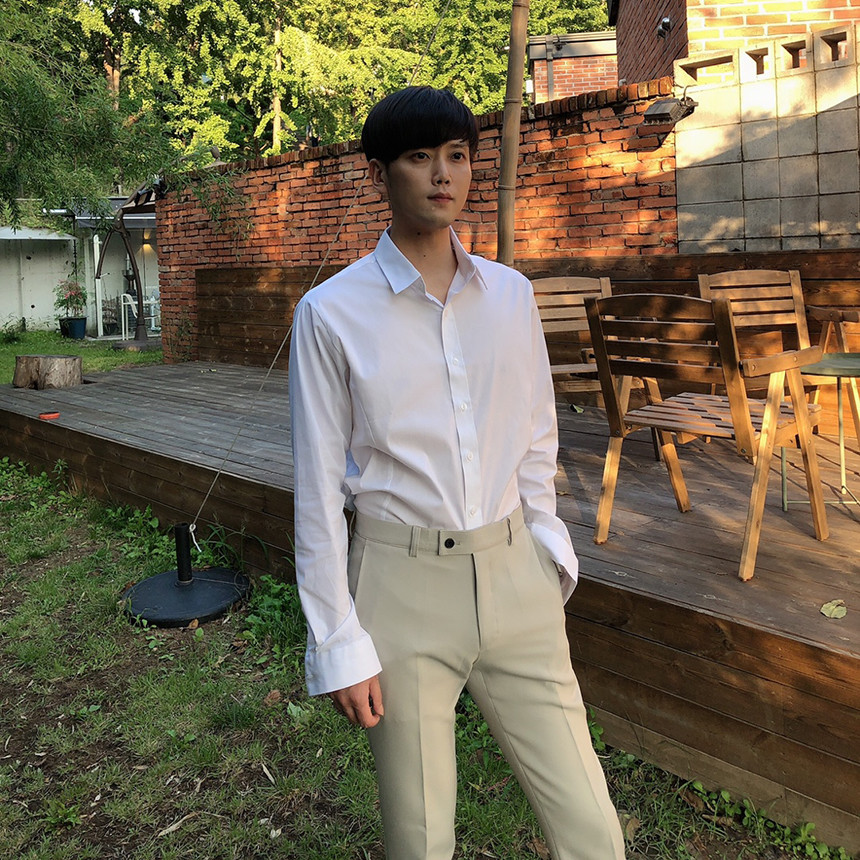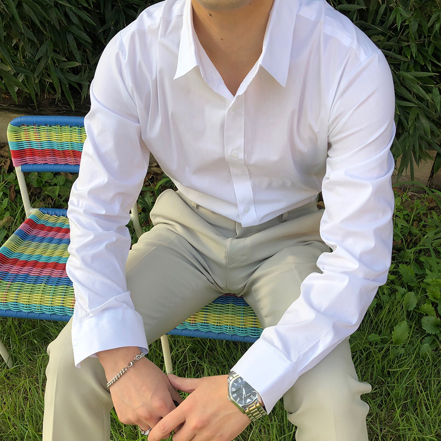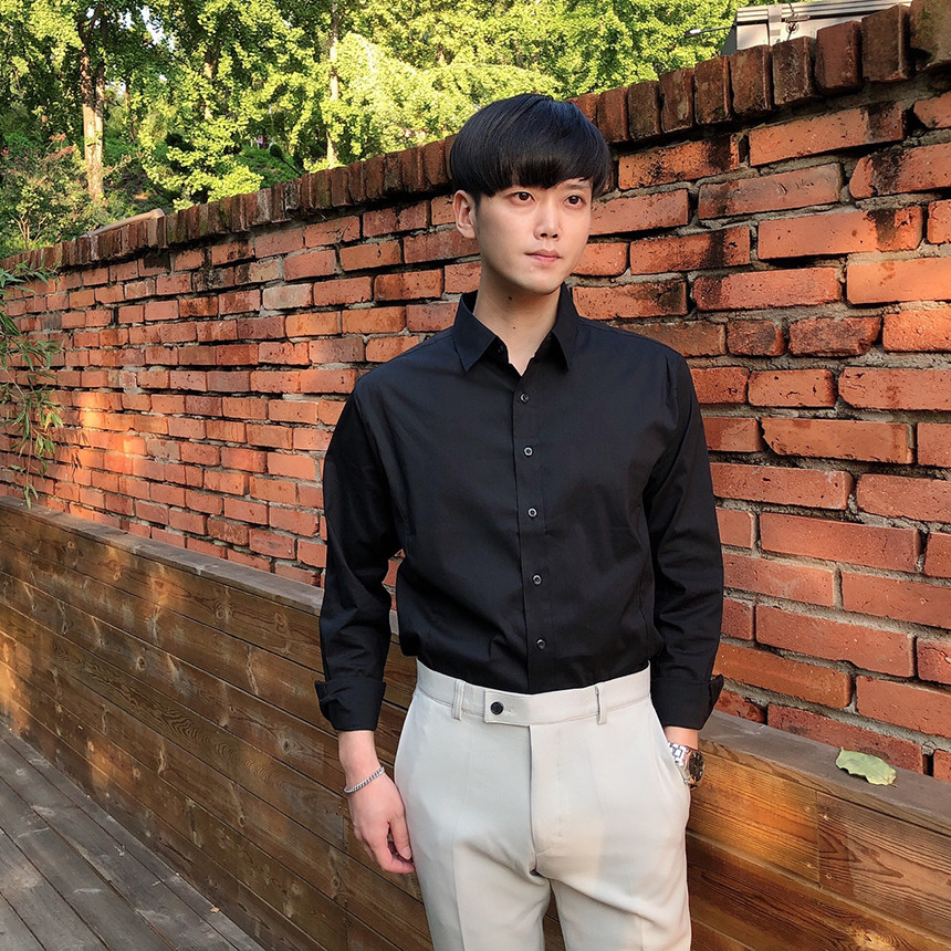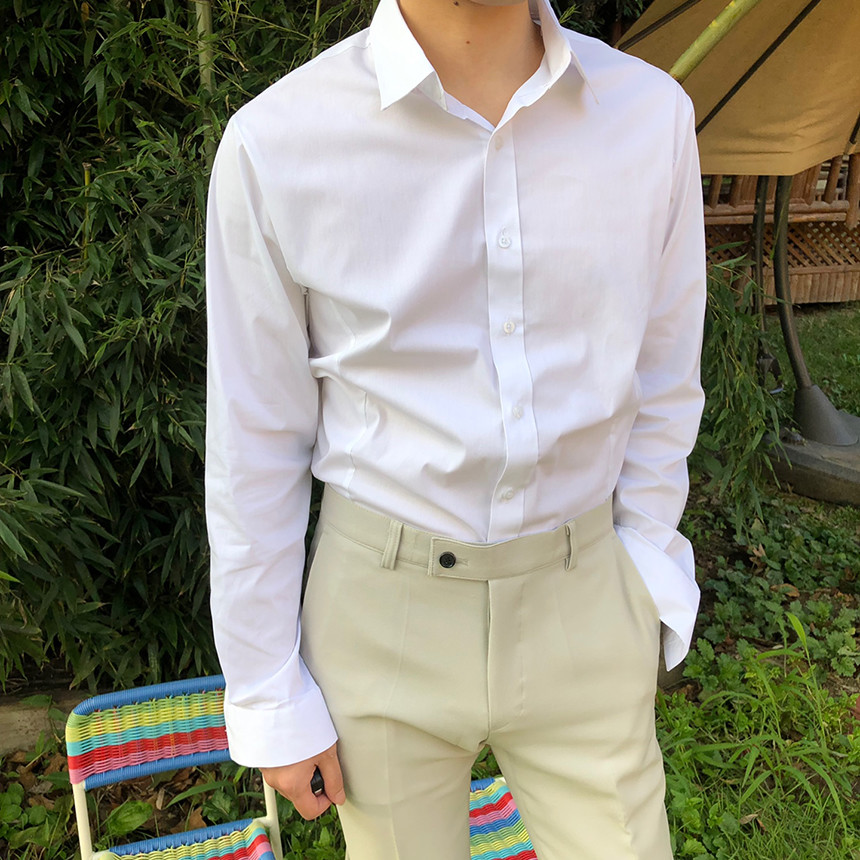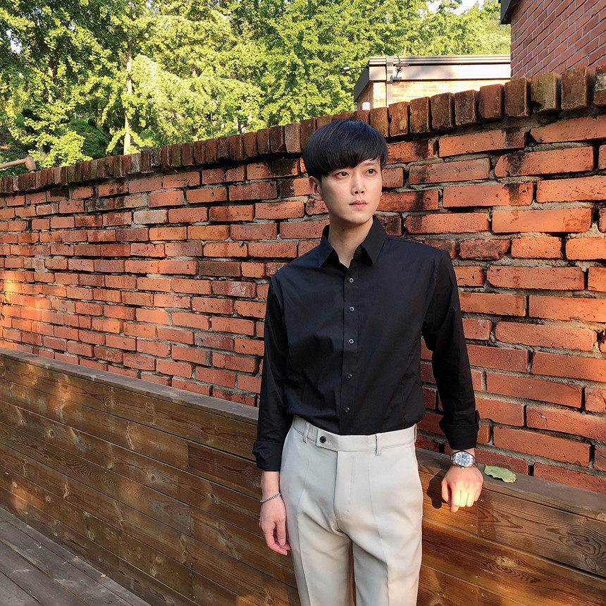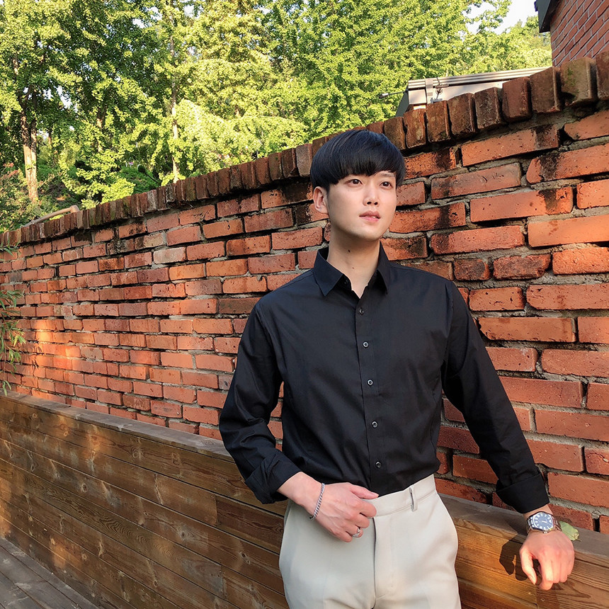 신축성 좋은 슬림한 핏의 긴팔 셔츠 입니다.