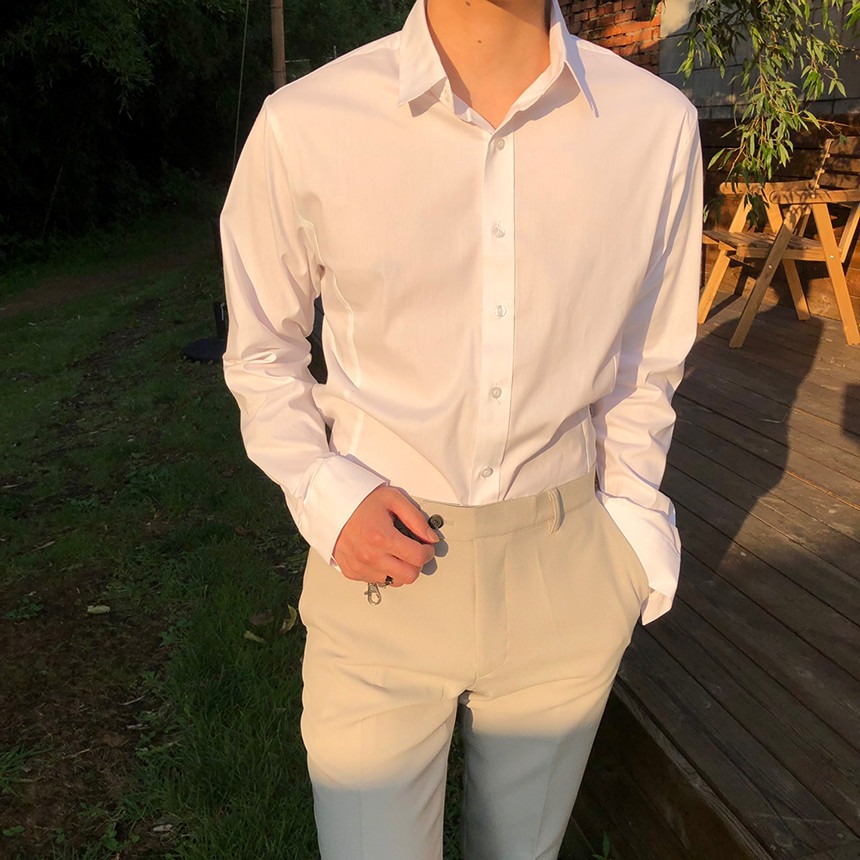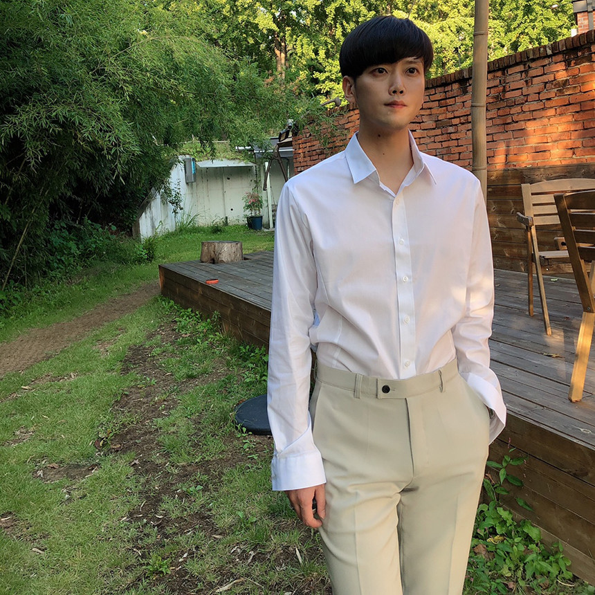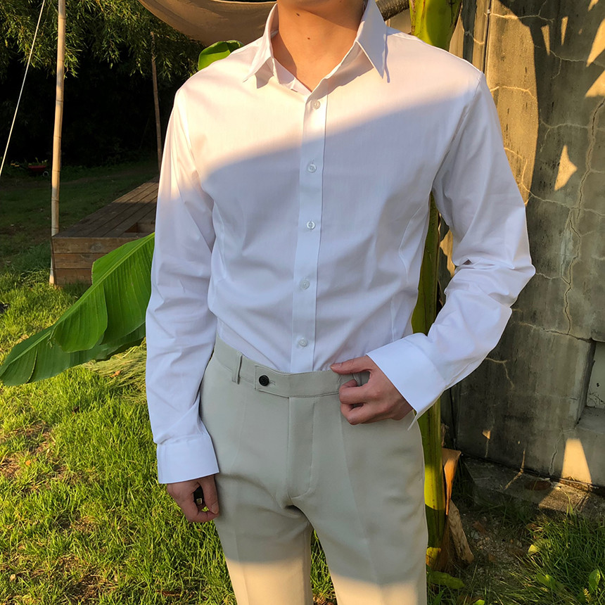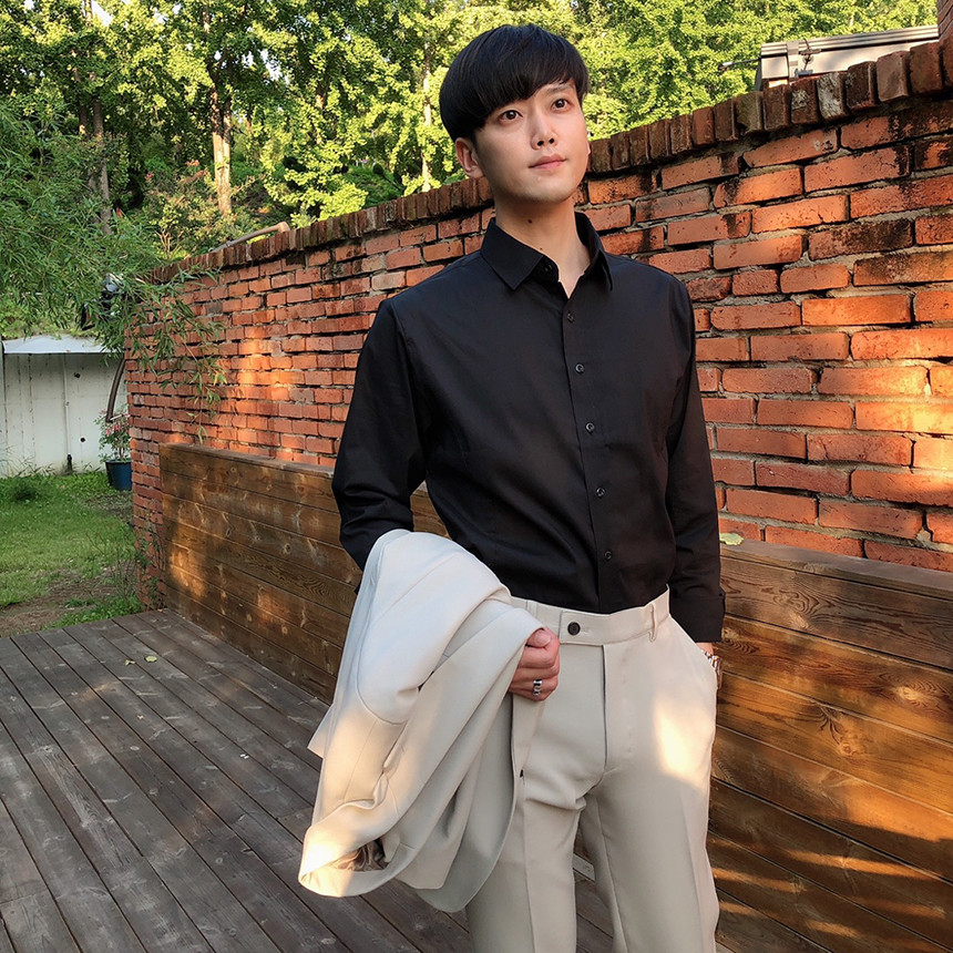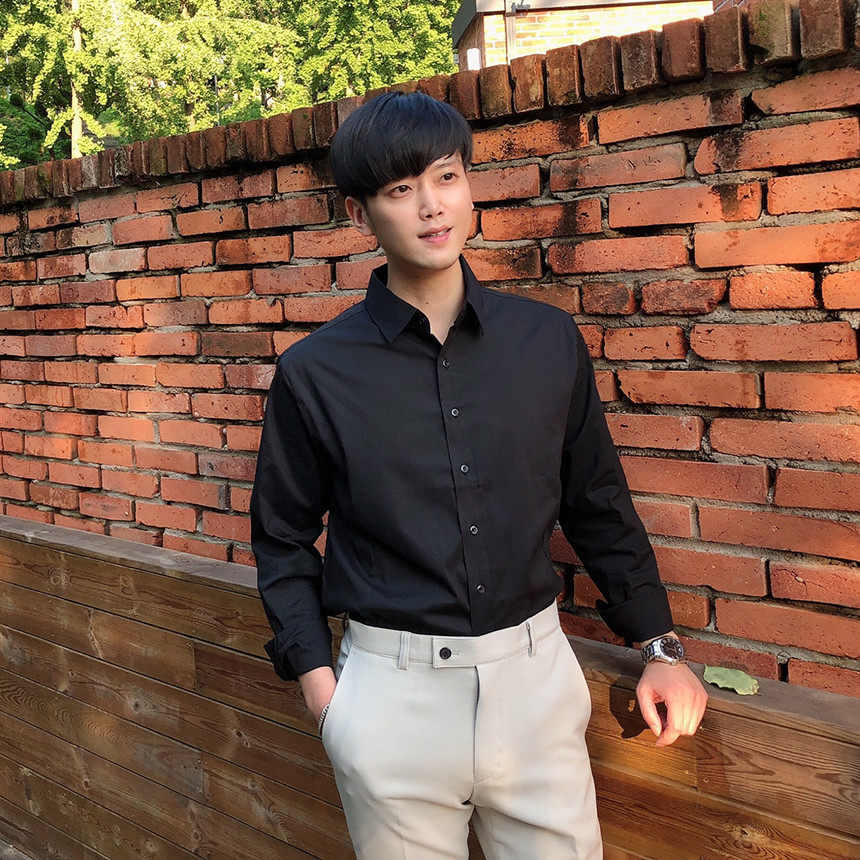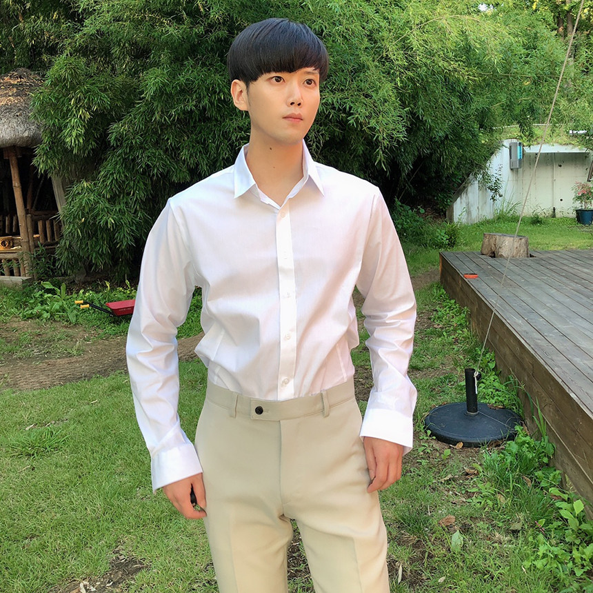 신축성 좋은 슬림한 핏의 긴팔 셔츠 입니다.