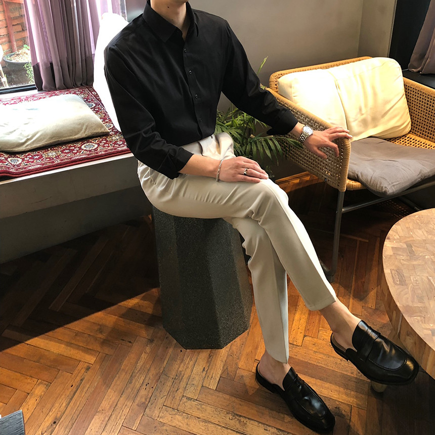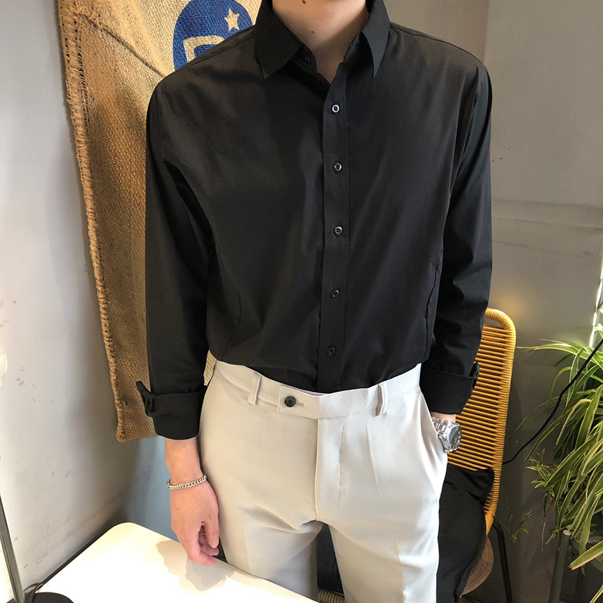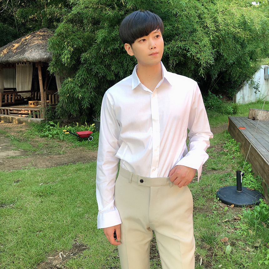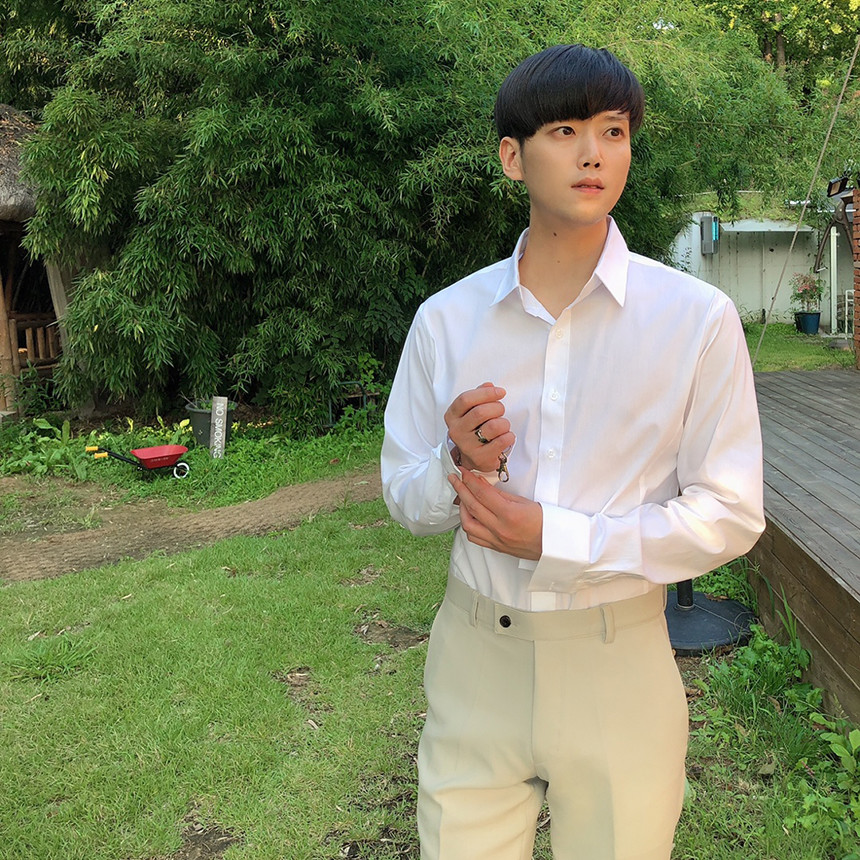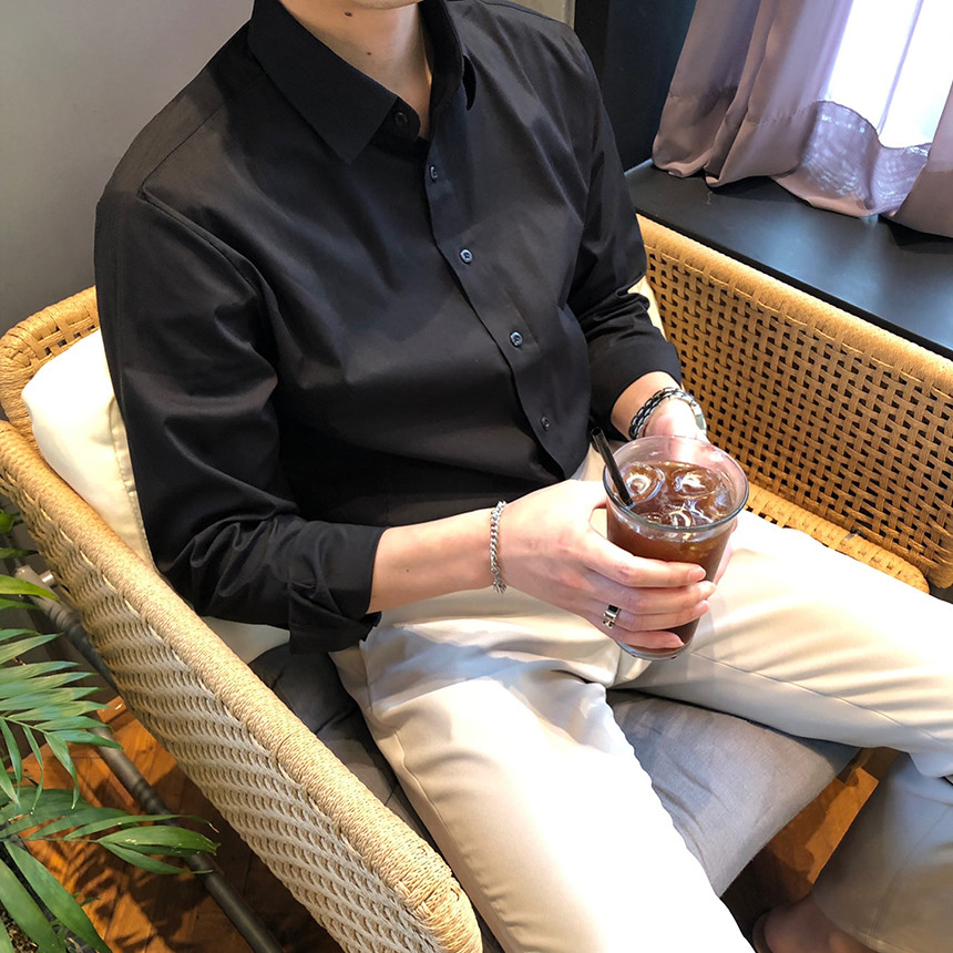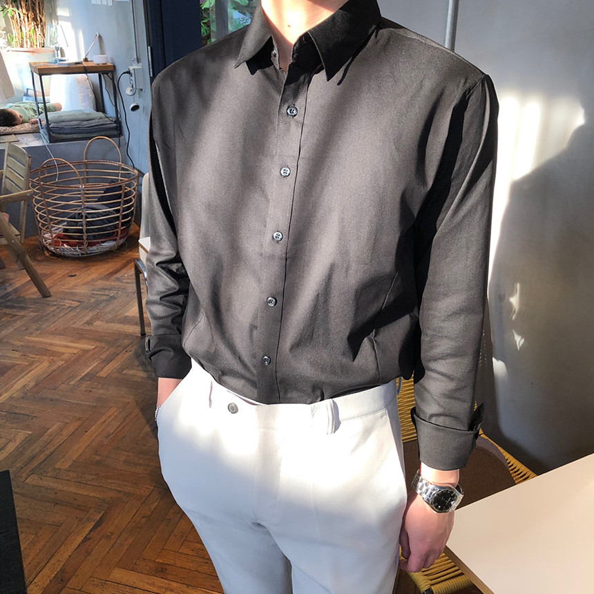 신축성 좋은 슬림한 핏의 긴팔 셔츠 입니다.