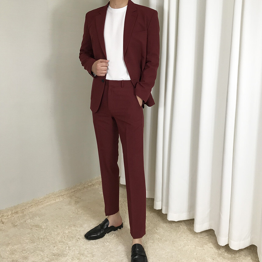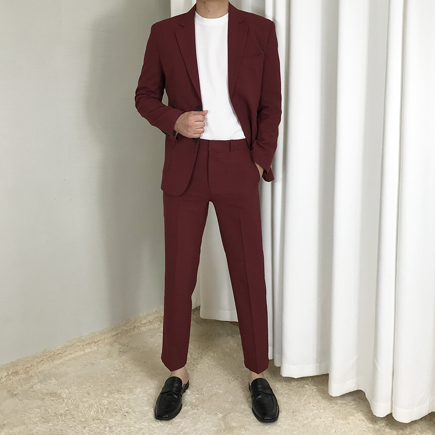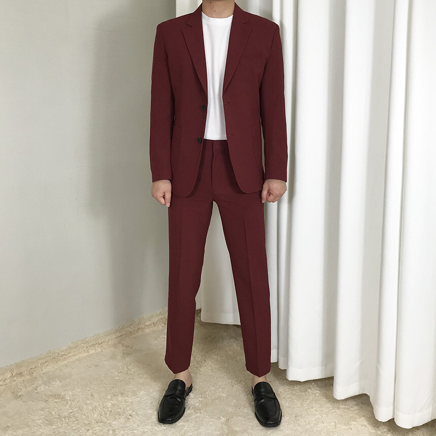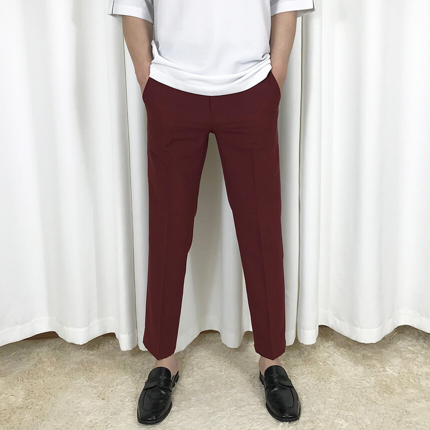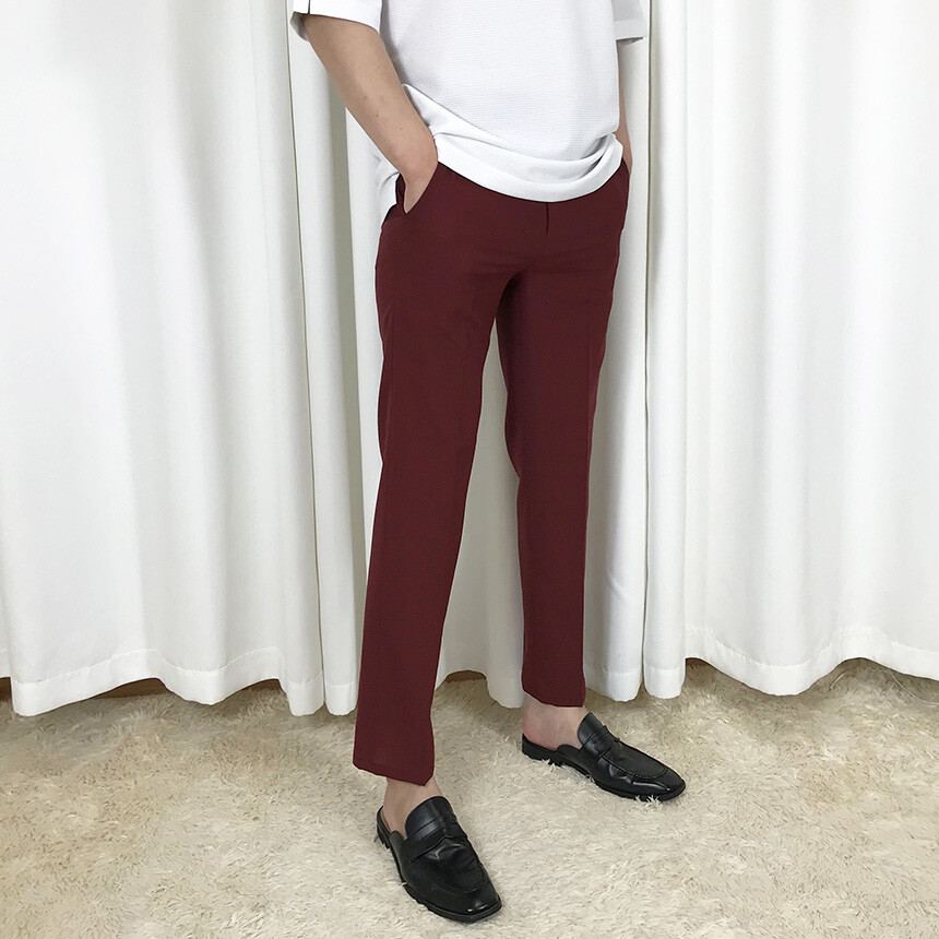 여름 슬림 레드와인 슬랙스