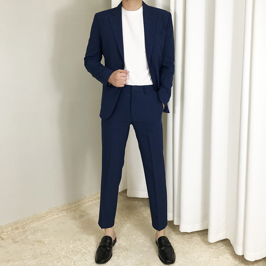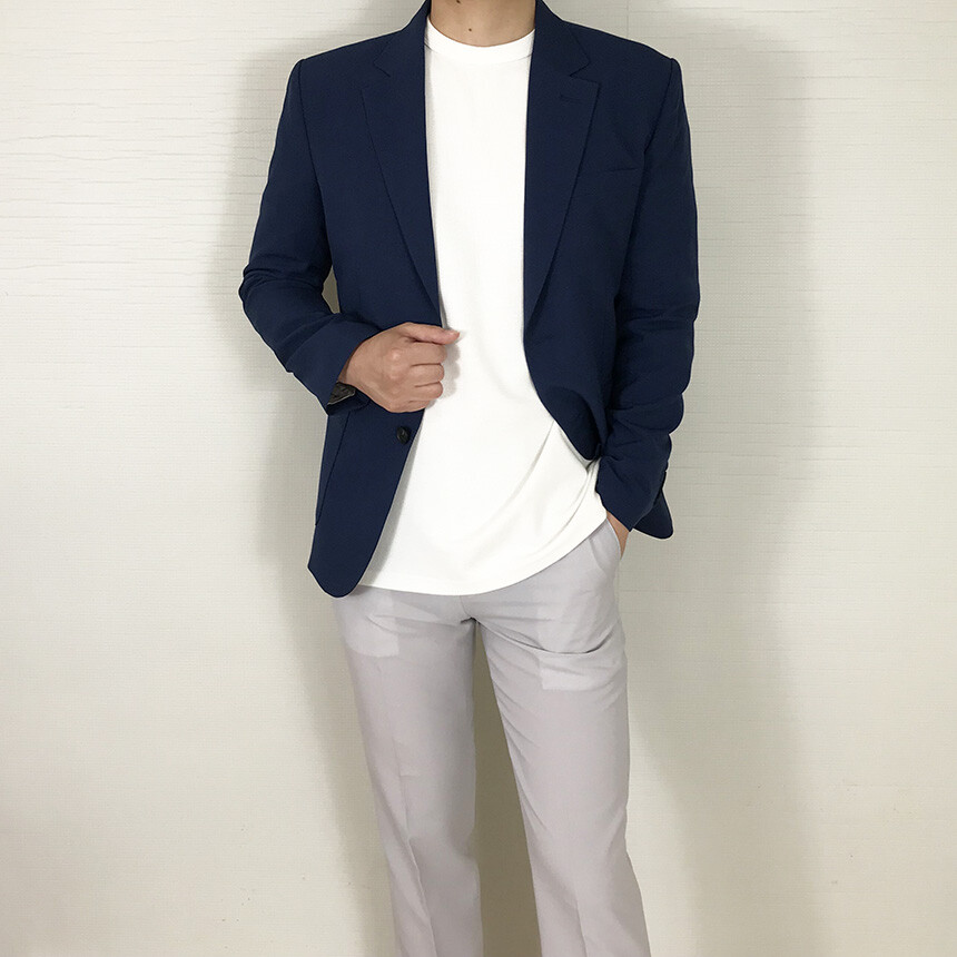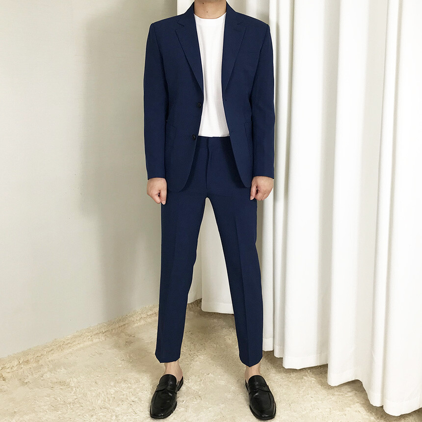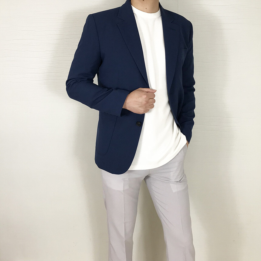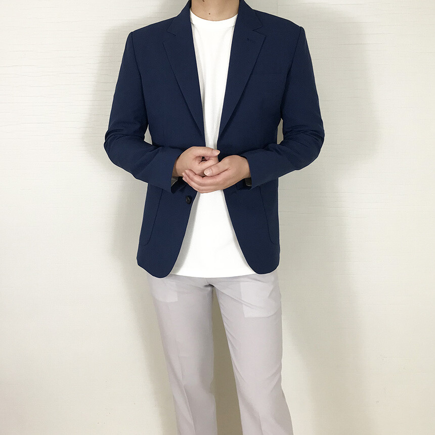 아웃포켓 슬림 딥블루 썸머 블레이저