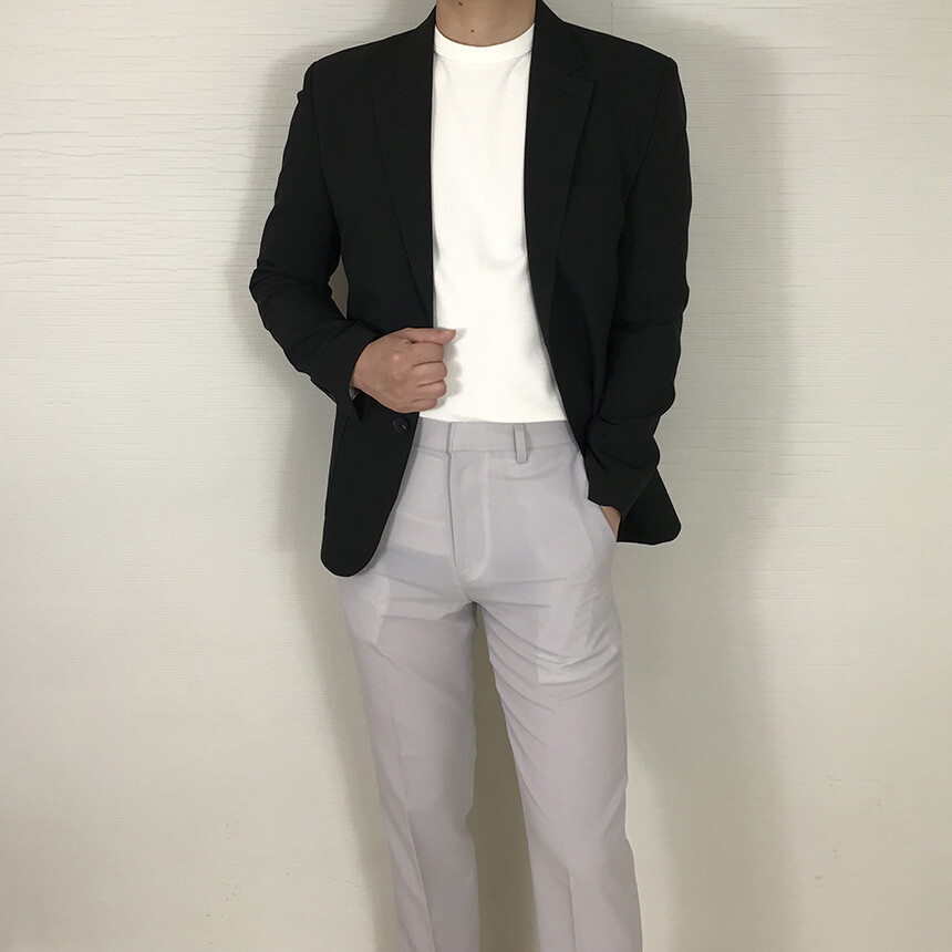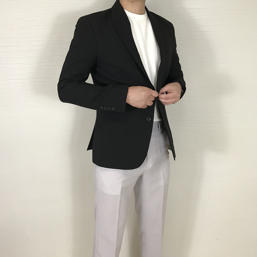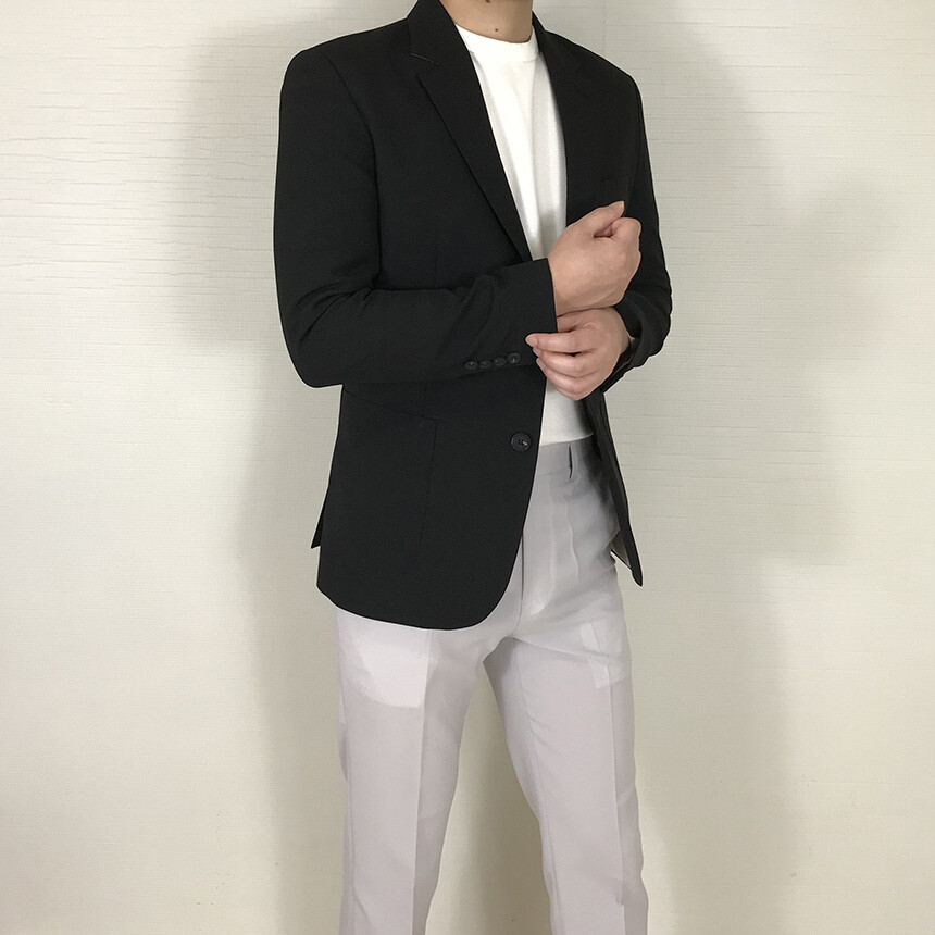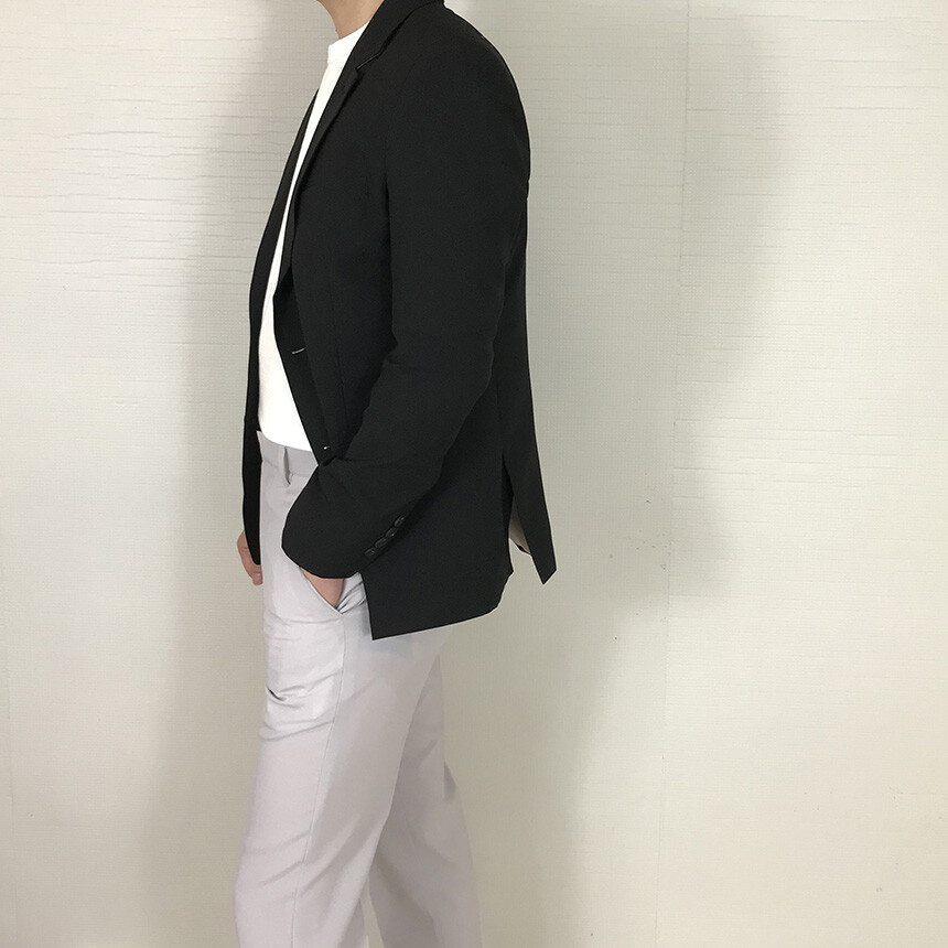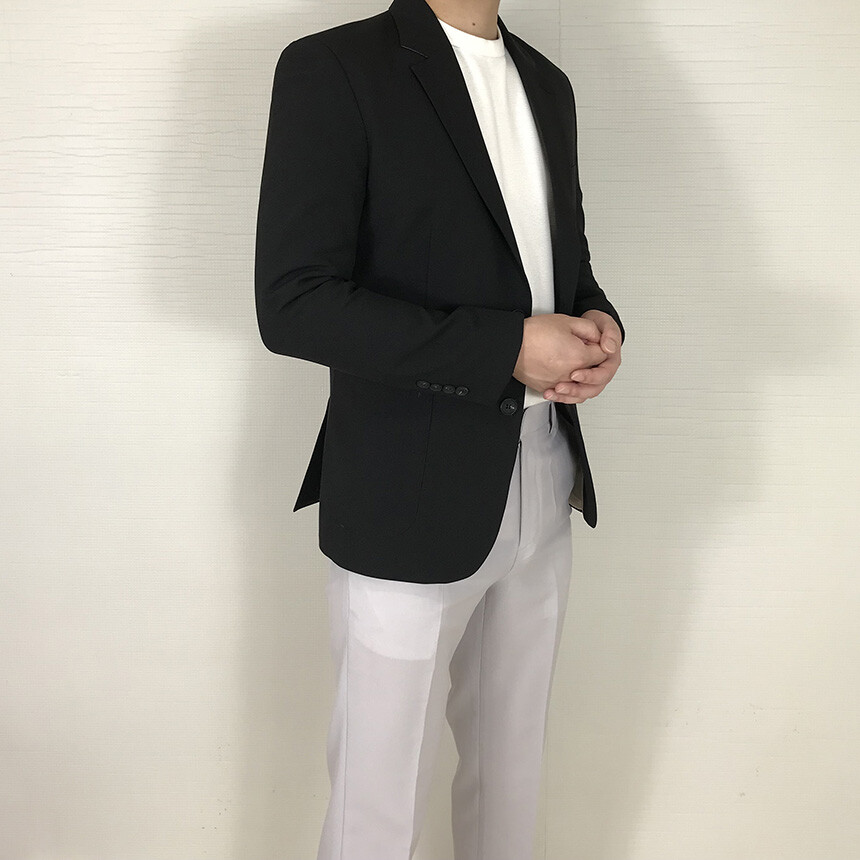 아웃포켓 슬림 블랙 썸머 블레이저 [BXAFLBM1612]