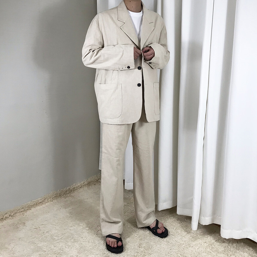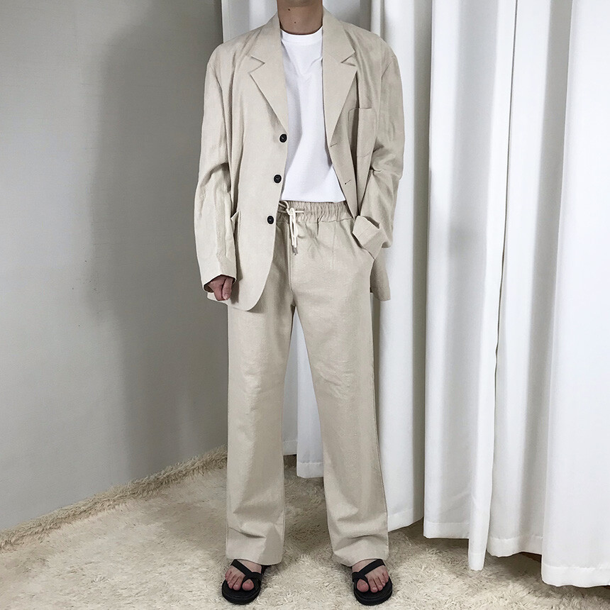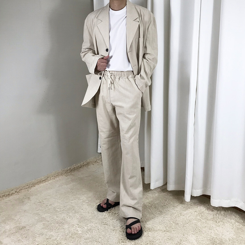 오버핏 린넨 밴딩 와이드 셋업(4col) [BXAFSBM1619]