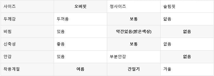 평소 입던 스타일과 달라 만족도가 낮을 수 있습니다
