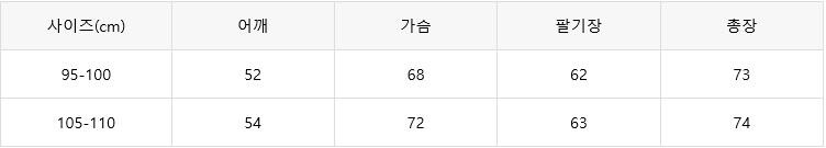 예시)본인사이즈100이면 100-105사이즈 구매 권장