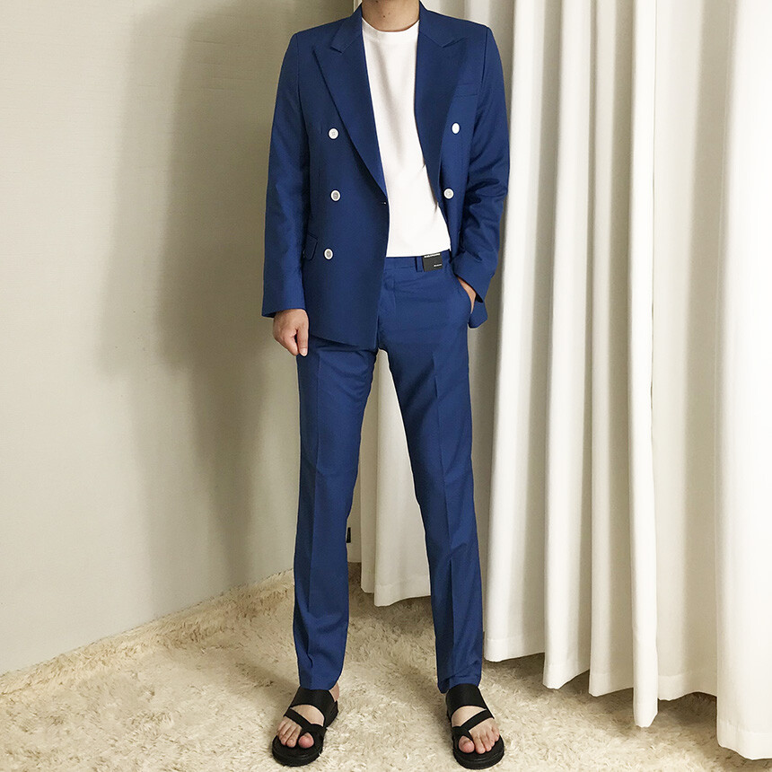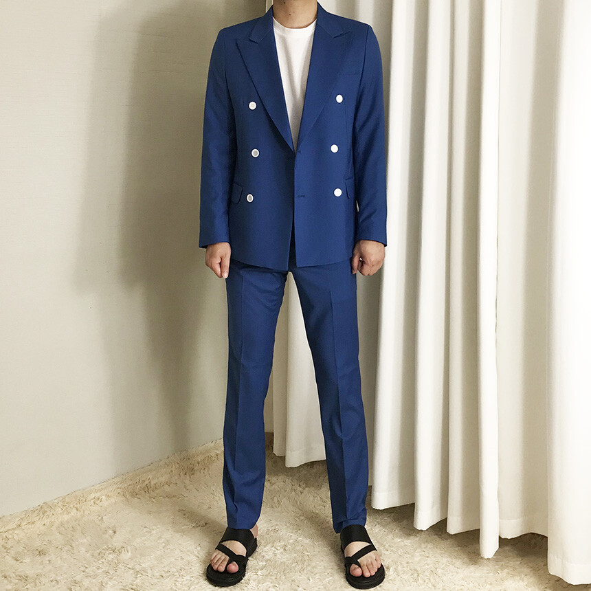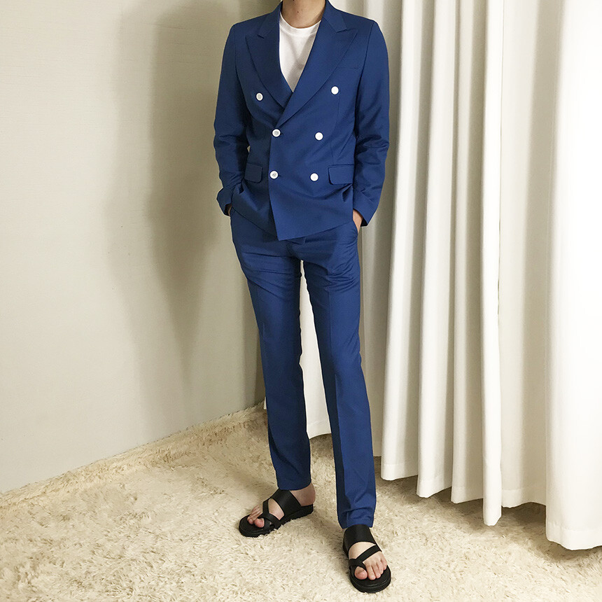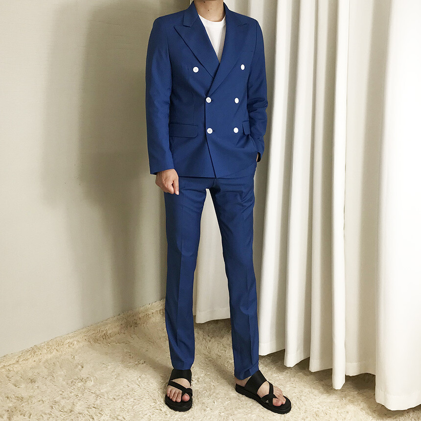 썸머 블루 슬림 더블 수트