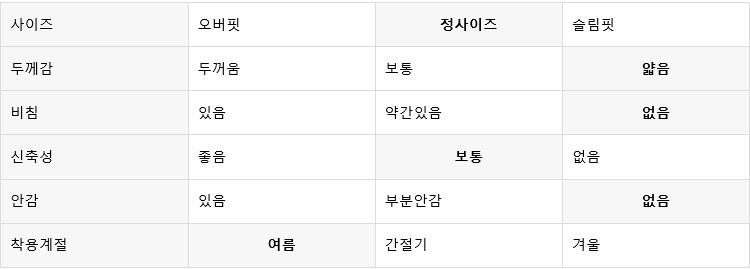평소 입던 스타일과 달라 만족도가 낮을 수 있습니다